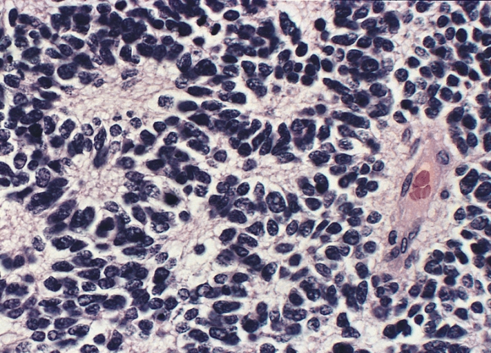 Neuroblastoma is a "small round blue cell tumor. Other small round blue cell tumors are Non-Hodgkin's Lymphoma, Ewing Sarcoma, undifferentiated soft tissue sarcomas including rhabdomyosarcoma, and PNET.