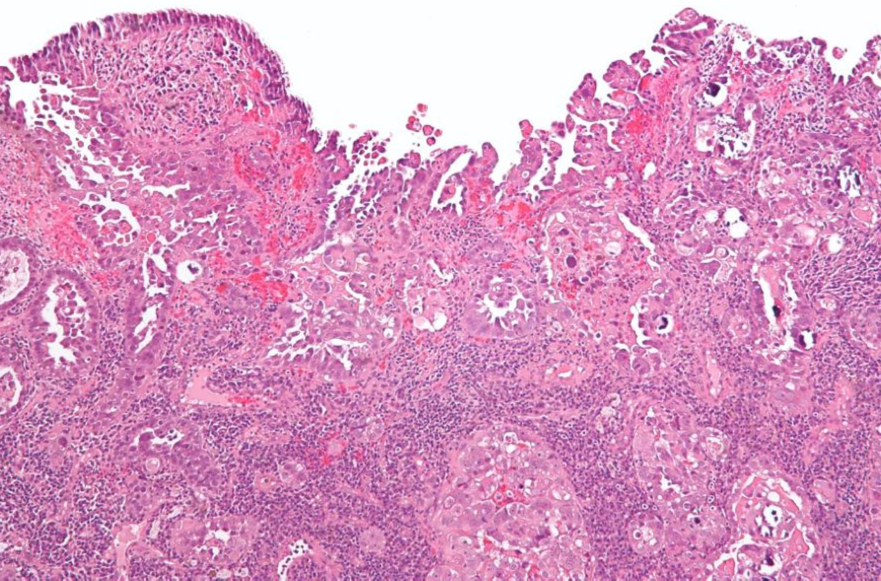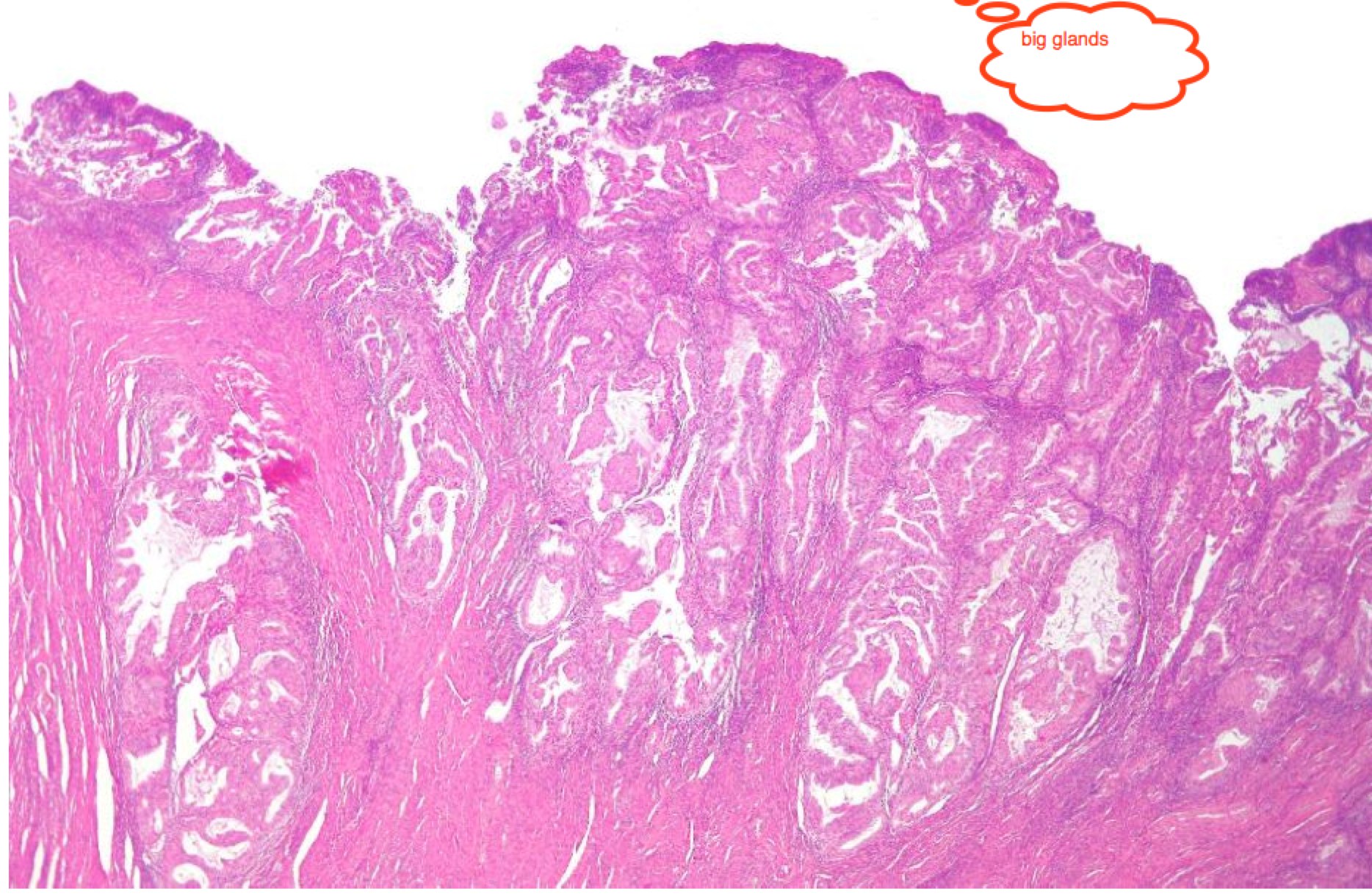 | Endometrioid: Big well structured glands | Papillary serous with sheets of cells between disorganized glands |