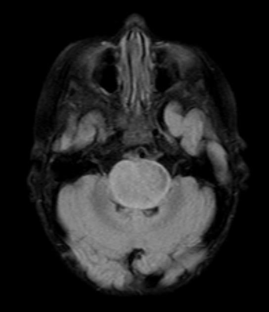 Focal tumors are limited in size (< 2 cm), well circumscribed on MRI without evidence of infiltration and without edema. They may be cyustic and the cystic component may be large relative to the solid component. Focal tumors can occur at any level of the brainstem, but most frequently occur in the midbrain and medulla. They usually have a long history of localizing findings such as an isolated cranial nerve deficit and contra-lateral hemiparesis. Increased ICP is uncommon, unless the tumor is in the tectal plate that may stenose the aquaduct of Sylvius while still small.