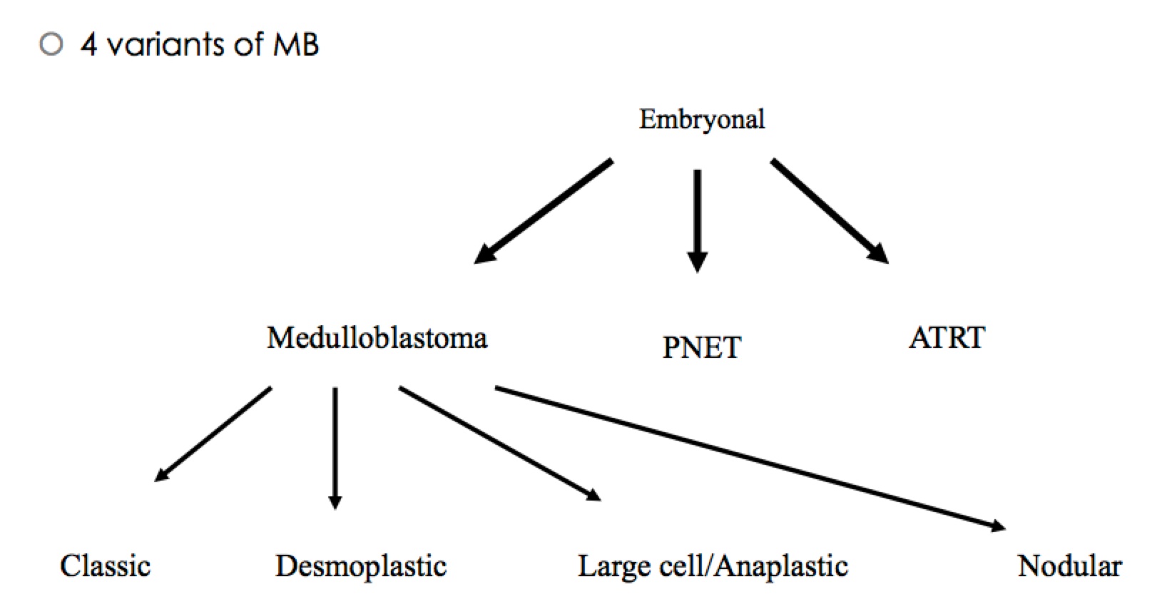 Simply stated: 4 variants arising from the same family as PNET adn ATRT from embryonal origins