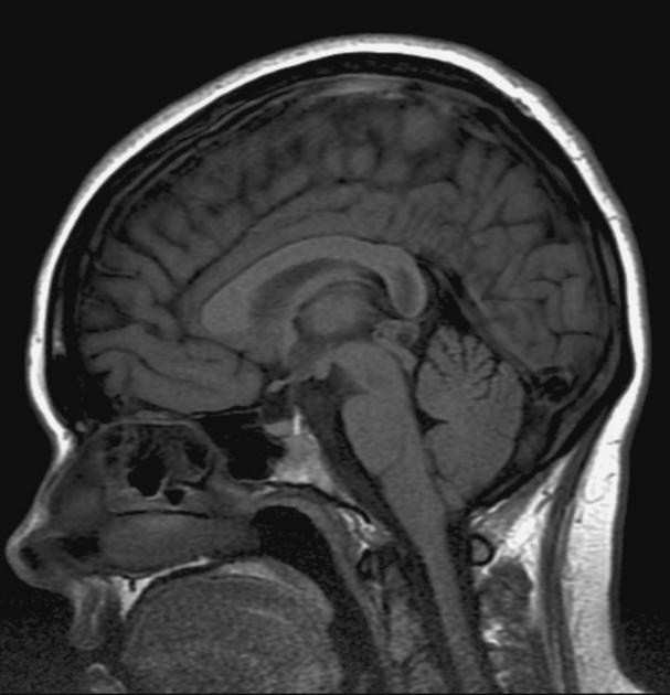 Pineocytomas are slow growing and composed of small uniform mature cells with occasional large pineocytomatous rosettes. They account for about half of the childhood pineal parenchymal tumors in kids. They are most commonly diagnosed in teenage years. The typical presentation is increased intracranial pressure. Some will present with Parinaud's Syndrome due tomesencephalic tegmental dysfunction which is manifest in a continual upward gaze, lid retraction, retraction nystagmus, and poorly reactive pupils, while preserving reaction to accomodation.