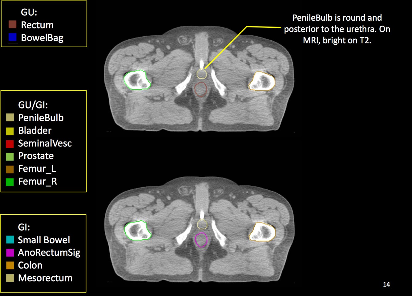 Anatomic delineation of the prostate and the apex using CT has not been without controversy. To attempt to resolve this several methods of identifying the apex were used:
