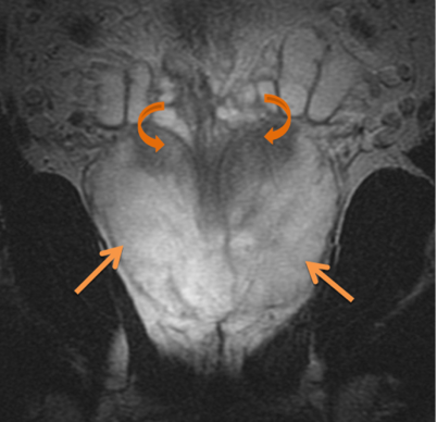 Prior TURP may also be a contraindication as this may allow seeds to overdose the urethra, which could lead to stricture or post-implant incontinence. With modern peripheral loading techniques, this may be less a contraindication than previously thought as complications have decreased. Linked seeds may be advantageous in this setting. Before any brachytherapy in a patient with a history of TURP can be considered, detailed imaging of the extent of TURP should be obtained and considered mandatory. T2 MRI and T1 post gadolinium will be helpful.