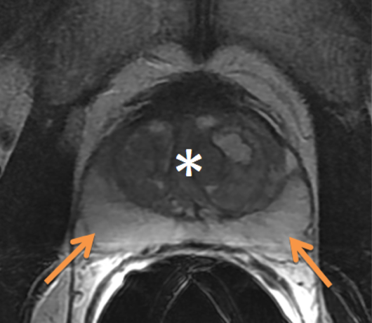 The surgical anatomy of the prostate is interesting in that the neurovascular bundles run superio-laterally and inferior-superiorly. They come close at the prostatic apex. Nerve sparing surgery becomes difficult in this region while attempting to achieve wide margins, increasing the risk of positiv apical margins. Efforts to increase the margin in this area can also result in a forshortened external sphincter increasing the risk of incontinence. Extracapsular extension is the cause of most non-apex positive margins. Johns Hopkins aregues that focal penetration of the capsule in the setting of low grade disease is not clinically significant, but penetration into the surrounding fat of 1 cm is a major unfavorable prognostic indicator. Conversely, the Mayo Clinic data suggests taht patients with GS ≥ 7 experience an increased risk of recurrence regardless of margin status.